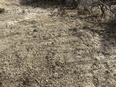 Viereiset kuvat 21.4.2013 Rovaniemellä jyrsitty kanto. 1. kuva: alkutilanne 2. kuva: jyrsintä 3. kuva: lopputulos ennen lopullista haravointia